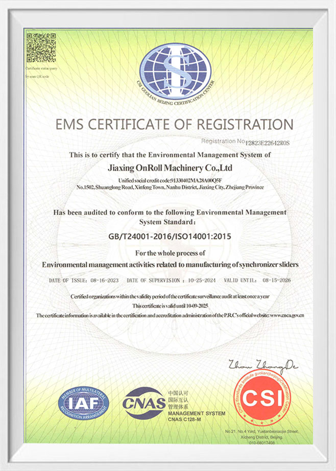 该公司的注册商标是“OnRoll”。公司占地面积4000平方米,已通过IATF16949质量体系认证, 配有同步器支柱自动生产设备和自动尺寸、弹性测试设备。第一个完成同步器支柱定位的, 打破高精度同步器支柱依赖进口,逐步更换进口零件,填补国内空白,同步器支柱产品基本覆盖国内品牌。